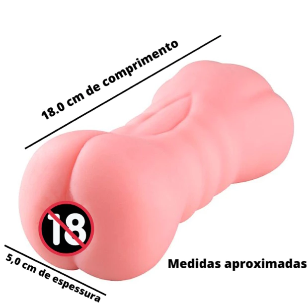 Masturbador em formato de vagina e ânus feito de CyberSkin, material macio de toque aveludado que imita perfeitamente a textura da pele humana. A parte exterior arredondada que facilitam a pegada. A parte interior possui orifício apertadinho, o que dá intensidade à sensação de prazer durante a penetração.